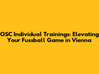 OSC Individual Trainings: Elevating Your Fussball Game In Vienna