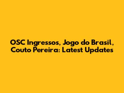 OSC Ingressos, Jogo Do Brasil, Couto Pereira: Latest Updates