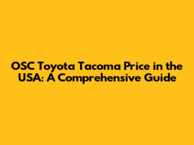 OSC Toyota Tacoma Price In The USA: A Comprehensive Guide