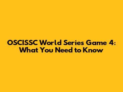 OSCISSC World Series Game 4: What You Need To Know