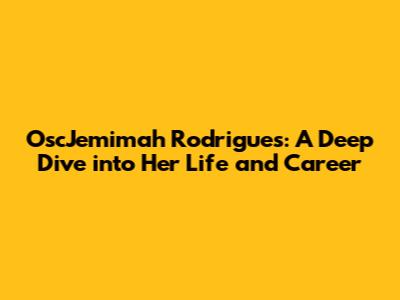 Hey guys! Today, we're diving deep into the world of OscJemimah Rodrigues, a name that's been buzzing around in various circles. Whether you've heard of her through her professional achievements, her contributions to a specific field, or just stumbled upon her name, this article aims to give you a comprehensive overview of who she is, what she's done, and why she's noteworthy. Get ready to explore the fascinating journey of OscJemimah Rodrigues!