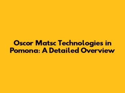 Oscor Matsc Technologies In Pomona: A Detailed Overview