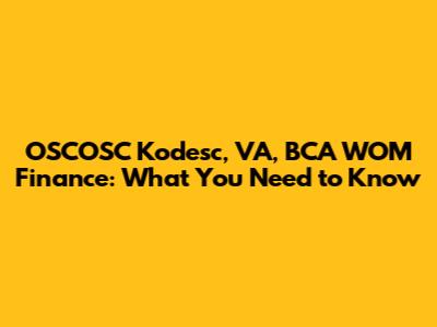 OSCOSC Kodesc, VA, BCA WOM Finance: What You Need To Know