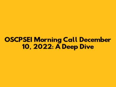 OSCPSEI Morning Call December 10, 2022: Insights And Analysis