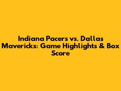 Pacers Vs. Mavericks: Game Highlights & Box Score