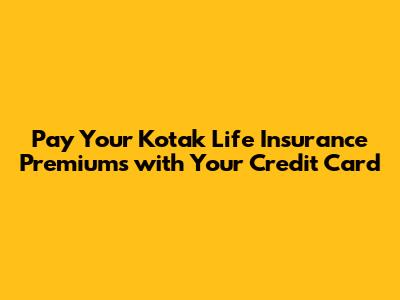 Pay Kotak Life Insurance Premiums With Your Credit Card