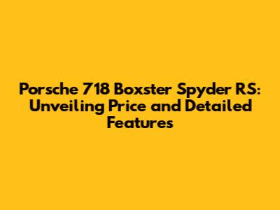 Porsche 718 Boxster Spyder RS: Price & Details