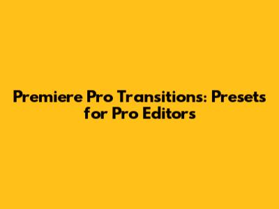 Premiere Pro Transitions: Presets For Pro Editors