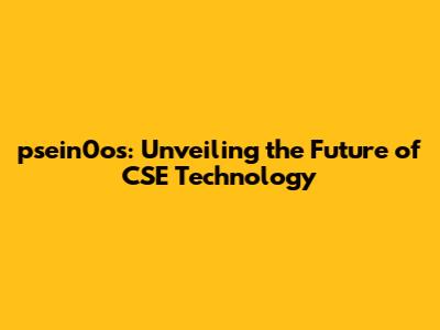 Psein0os: Unveiling The Future Of CSE Technology