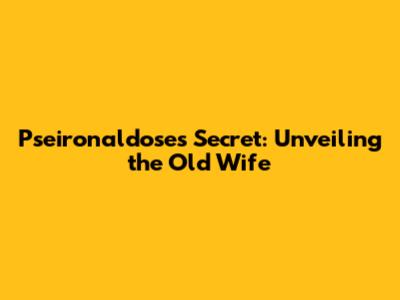 Pseironaldose's Secret: Unveiling The Old Wife
