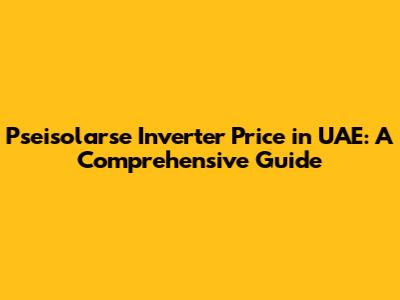 Pseisolarse Inverter Price In UAE: A Comprehensive Guide