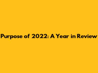 Purpose Of 2022: A Year In Review