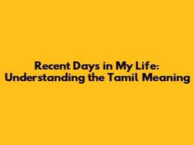 Recent Days In My Life: Understanding The Tamil Meaning