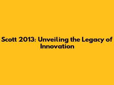 Scott 2013: Unveiling The Legacy Of Innovation