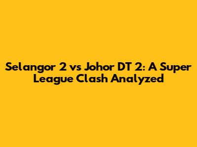 Selangor 2 Vs Johor DT 2: Match Analysis & Super League Showdown