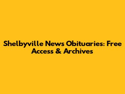 Shelbyville News Obituaries: Free Access & Archives