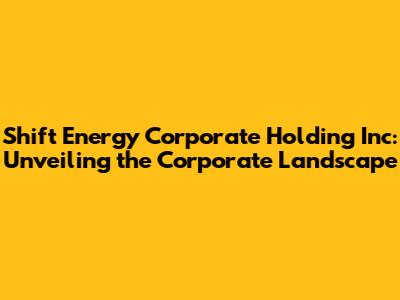 Hey everyone! Let's dive into something a little more complex: Shift Energy Corporate Holding Inc. and what makes them tick. Understanding the corporate structure of a company, especially a holding company, can feel like navigating a maze. But don't worry, we're going to break it down and make it easy to understand. We'll explore the ins and outs, giving you a clear picture of what Shift Energy Corporate Holding Inc. is all about and what that means for their business endeavors. So, buckle up, because we are about to begin our journey!
