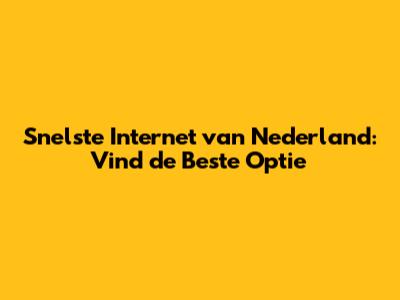 Snelste Internet Van Nederland: Vind De Beste Optie