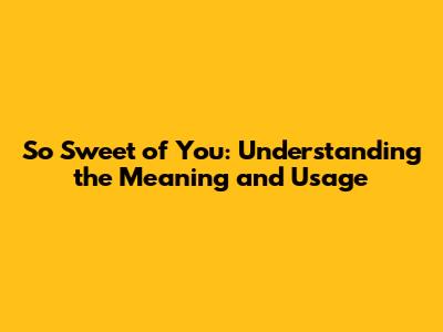 So Sweet Of You: Understanding The Meaning And Usage