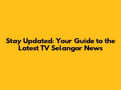 Stay Updated: Your Guide To The Latest TV Selangor News