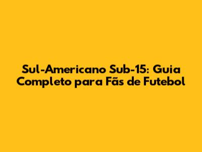 Sul-Americano Sub-15: Guia Completo Para Fãs De Futebol