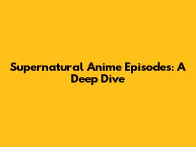 Supernatural: Diving Deep Into The Anime Series