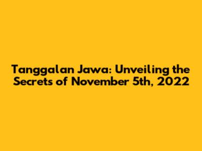 Hey everyone! Let's dive into the fascinating world of Tanggalan Jawa, the Javanese calendar, and specifically, what November 5th, 2022, holds! It's super interesting, guys, because the Javanese calendar isn't just about dates; it's a whole system woven with cultural significance, astrological influences, and a deep connection to the natural world. Understanding the Tanggalan Jawa gives you insights into the spiritual and social aspects of Javanese life. So, grab a cup of coffee (or teh panas, if you're feeling authentic!) and let's explore. We'll break down the date, talk about its significance, and see what the day might have meant for people in Java back in 2022. It's like a glimpse into a different way of experiencing time, you know? It’s not just about what day of the week it is, but also about understanding the influence of natural elements. So, let’s get started and unravel the mysteries of November 5th, 2022, according to the Tanggalan Jawa!