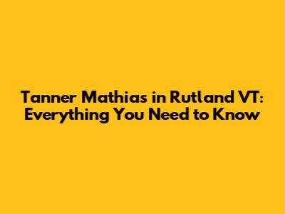 Tanner Mathias In Rutland VT: Everything You Need To Know