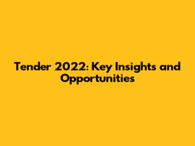 Tender 2022: Key Insights And Opportunities