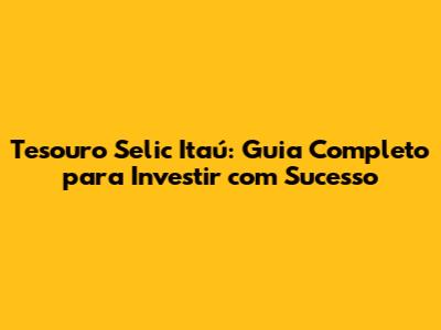 Tesouro Selic Itaú: Guia Completo Para Investir Com Sucesso