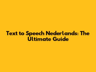 Text To Speech Nederlands: The Ultimate Guide