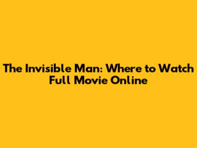 The Invisible Man: Where To Watch Full Movie Online