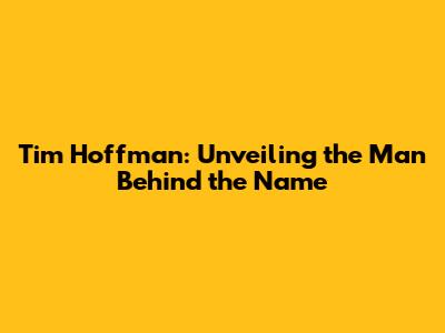 Tim Hoffman: A Deep Dive Into His Life And Work
