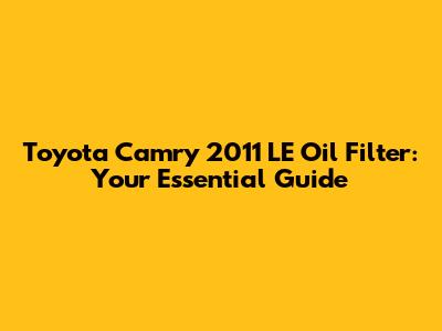 Toyota Camry 2011 LE: Oil Filter Guide & Replacement