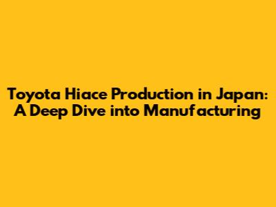 Toyota Hiace: Manufacturing In Japan Explained