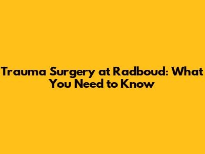 Trauma Surgery At Radboud: What You Need To Know