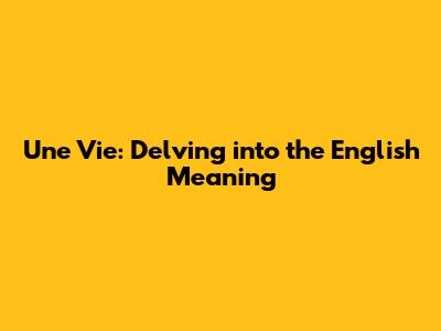 Une Vie: Unveiling The Meaning In English
