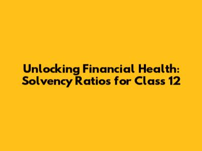 Unlocking Financial Health: Solvency Ratios For Class 12