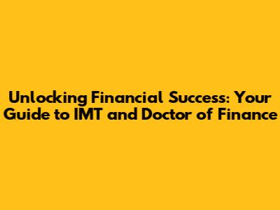 Unlocking Financial Success: Your Guide To IMT And Doctor Of Finance