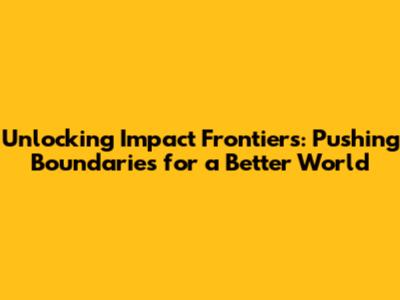 Unlocking Impact Frontiers: Pushing Boundaries For A Better World