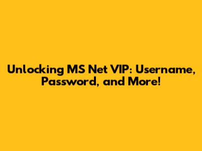 Hey guys! Ever wondered about accessing the MS Net VIP realm? It's like having a backstage pass to a world of exclusive content, features, and possibly even some sweet deals. But, of course, the golden ticket usually involves a username and password. Let's dive deep into what MS Net VIP is all about, how you might snag those precious login details, and what you can expect once you're in. We'll cover everything from the basics to some insider tips and tricks to help you navigate the system. Get ready to level up your MS Net experience! This article will be your ultimate guide to understanding the MS Net VIP system and how to access it. We will explore the ins and outs of the system, potential benefits, and the steps to get you started. If you're eager to unlock premium features and gain access to exclusive content, keep reading. Let's get this show on the road!