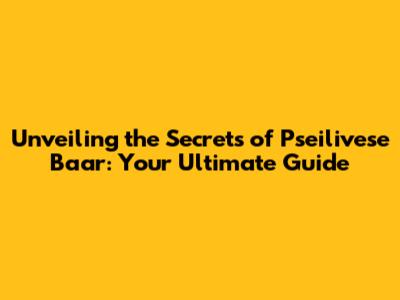Demystifying Pseilivese Baar: What Is It?