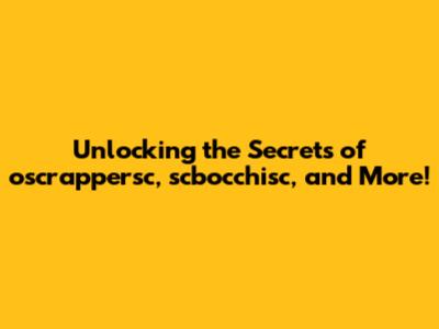 Unlocking The Secrets Of Oscrappersc, Scbocchisc, And More!