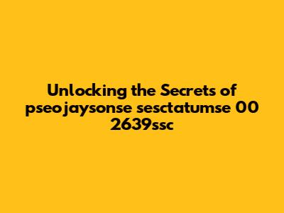 Unlocking The Secrets Of Pseojaysonse Sesctatumse 00 2639ssc