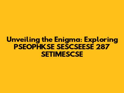 Unlocking The Secrets Of PSEOPHKSE SESCSEESE 287 SETIMESCSE