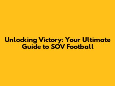 Unlocking Victory: Your Ultimate Guide To SOV Football