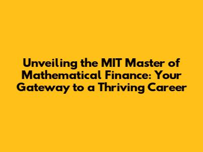 Unlocking Your Future: MIT's Master Of Mathematical Finance