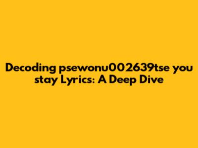 Unpacking The Heartbreak: Analyzing 'psewonu002639tse You Stay' Lyrics