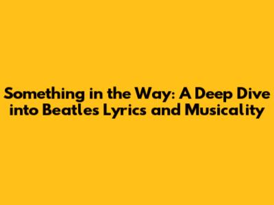 Hey music lovers! Ever gotten lost in a song and felt like it was speaking directly to your soul? That's the magic of the Beatles, especially when we dive into their lyrics. Today, we're going to explore "Something in the Way," a track that, while not a Beatles original, has a fascinating history and lyrical depth. We'll be looking at the lyrics, the meaning behind them, and why this particular song resonates with so many people. So, grab your headphones, get comfy, and let's get started!