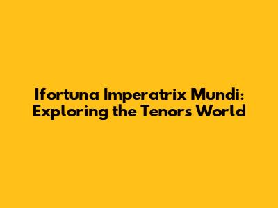 Hey guys! Ever heard of "Ifortuna Imperatrix Mundi"? Sounds intriguing, right? Well, it is! Today, we're diving deep into the world of this unique piece, focusing particularly on how it resonates with a tenor voice. We'll explore its meaning, historical context, and the incredible vocal challenges it presents. Get ready for a fascinating exploration into the heart of this musical masterpiece, and what makes the tenor voice the perfect instrument to bring it to life! So, buckle up, and let's get started on this musical adventure.